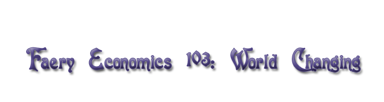 I just awakened (it's 4:45 AM, but who cares about that?) with faery economics in my head again. I don't, as you must realize by now, fully understand them, so the fae keep trying to explain them to me. This is very basic stuff to them, but full of shifting energies and mystery to me. This morning's lesson: It's all about change and the exchange. I woke up wondering why the fae want me to write the books I'm working on, because it is my perception that they do want that very much. (I won't argue with anyone about whether that is objectively "true" or not — my perceptions may or may not be thy perceptions, but — like all of us — mine influence what I do. So I'm working hard on the books and they are coming along well — again, my perception). As I think/intuit my way through Marzipan's story with faery help, it is changing my energy/thoughts/behavior in a way that the world could change — if enough of us want it to make it so. The oracle book is the same, but in a different way. The thing I'm learning right this moment is that the reason the fae have so much difficulty with the "money thing" (see Faery Economics 101 and Faery Economics 102 for my first two posts on this) is because their perception and methods are so different from humans. Instead of messing around with earning money with which to attempt to buy things that may not even be for sale, they look for a connection of desire-energy with matching desire-energy. For instance, if I want to see the world change in a certain way and if they want to see the same changes, it obviously (to them and to me) behooves us to work together. Their idea of "working together" seems to be about facilitating things in a naturally magical way that will help both of us to do what we can toward that change, resulting in a synergistic effect that neither of us may be able to create by ourselves. Like writing books. Well, I can write them by myself, but that doesn't get them out to other people. For publication and distribution I need both help and "luck" — cooperation, synchronicity, things coming together in surprising but wonderful ways. Meeting the right people "by accident", receiving the right help at the right time "by coincidence". Of course, my part in this is to exercise serendipity — the ability to recognize good things when they happen and to work out how to take advantage of them. And to, ahem, actually write down the inspirations in a coherent and (hopefully) engaging form. In practical terms, from my own side of the experience, this seems to result in many things, both large and small, "working" for me in a fashion that is convenient and verging on the miraculous. Coincidence, synchronicity, and serendipity abound. Even if it turns out that we humans can't or don't do our part "successfully" (making money or other tangible reward) there is still value in what we do — in the energy/action. It adds to the total of that energy/action in our Universe, in non-local consciousness, in the Void-which-is-fullness. If we make the effort, it adds to the force of change — and the fae understand that even if we don't. It's the effort that counts more than any illusory "results". You are changing the world, even if the human part of the world doesn't notice. It's kind of like the hundredth monkey thing. You know that story, right? The one where there are two islands, both inhabited by monkeys but the monkeys of each island are not in physical contact with each other. On one island, the monkeys figure something out and develop a new behavior. They wash their some of their food before eating it. The new behavior spreads throughout the island, and when the last (or the hundredth monkey, depending on the version) has learned to wash the food before eating it, there is a sudden jump (I suppose this is where nonlocal consciousness comes in). Suddenly, monkeys on the neighboring island, without physical contact with the first group, begin washing their food before eating. This story has its problems — like whether or not it is "true" in an objective view of truth as factual information. See the Hundredth Monkey Effect. However, it has a certain value of "truthiness" for many people. It's based on something that many feel intuitively is true — that the world can be changed by intangible means — even that behavior can be changed in a widespread group when enough beings adopt the new behavior. It may be objectively true, it may not — we haven't proved it scientifically either way and we've only our internal, intuitive, gut-feeling to go on. It's about the reality or unreality of nonlocal consciousness, which we've talked about elsewhere. The thing is... this "truthiness" thing, we have this feeling that, even if we can't prove it, it ought to be true. For some reason I'm thinking about a trumpet here. A trumpet is a musical instrument that cannot make music. The music only happens when someone blows through it and twiddles the keys. So. A trumpet is a cute, curly bit of metal without the breath that blows through. To a trumpet, that breath is an invisible mystery — it comes when it comes and when it doesn't, there is nothing the trumpet may know of that will make it blow. The other thing I'm thinking about is all of us and non-local consciousness. What if the human brain is like a trumpet and non-local consciousness is the breath that blows? I'm also thinking about "word magic" which is practiced by both scientists and magical thinkers (whom scientists hold in contempt). There is a story I read long ago (and unfortunately can't remember the title or the author) about three young men who came out of a club for a breath of fresh air. They were musicians and brought their instruments out and were gently tootling them together. Suddenly something huge and dark appeared above the trees to the east of them. With no sound but a low hum, this huge dark flattened sphere drifted over until it hovered above them. Colored lights began flashing a